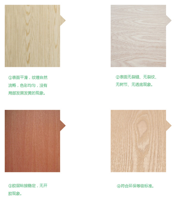 飾面板是普通膠合板上覆貼一層名貴樹種木皮而成,廣泛用于裝修的表面裝飾及家俱。伴隨珍稀樹種資源的日益枯竭,為保護(hù)有限資源,發(fā)達(dá)國(guó)家已成功開發(fā)出裝飾組合單板(科技木),以代替名貴木皮生產(chǎn)貼面板,在花式,紋理上幾可亂真,又避免了天然木材的各種生長(zhǎng)缺陷,深受市場(chǎng)歡迎,引起很大反響。 優(yōu)質(zhì)面板要求美觀大方,花紋(弦向)貼面板要求紋理清晰,木紋對(duì)稱,無明顯色差,無死節(jié),無挖補(bǔ),無砂傷,壓痕,無板面污漬,平整光滑;直紋(徑向)貼面板要求紋理平直,無明顯色差,無點(diǎn)狀節(jié)子。 常用貼面板,膠合強(qiáng)度0.5Mpa,浸漬剝離每邊 1/3,含水率6-14% 。