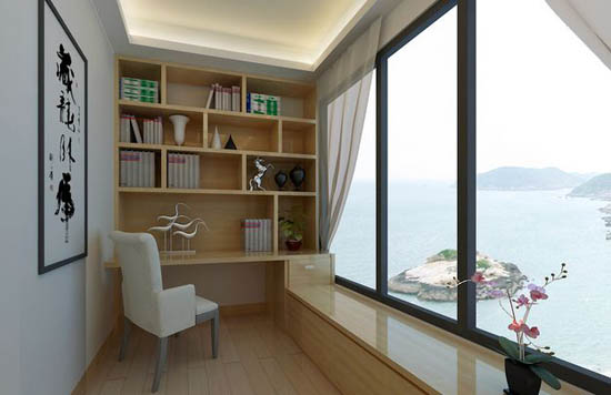 二、陽臺變書房當家里臥室比較少,想要書房的時候,陽臺就可以發揮作用了,可以用來家庭辦公,還能周末放松,想象一下周末坐在陽臺上看書,是一件多么愜意的事情。書房里量身打制書柜、書桌,多余的空間,放置休閑桌椅是個不錯的選擇,讓陽臺的書房生活變得更小資。