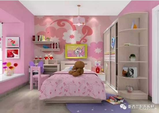 女孩子的房間相對于男孩子在配色上更適合暖色,如紅色、粉色等。這樣更容易營造出小公主的姿態。